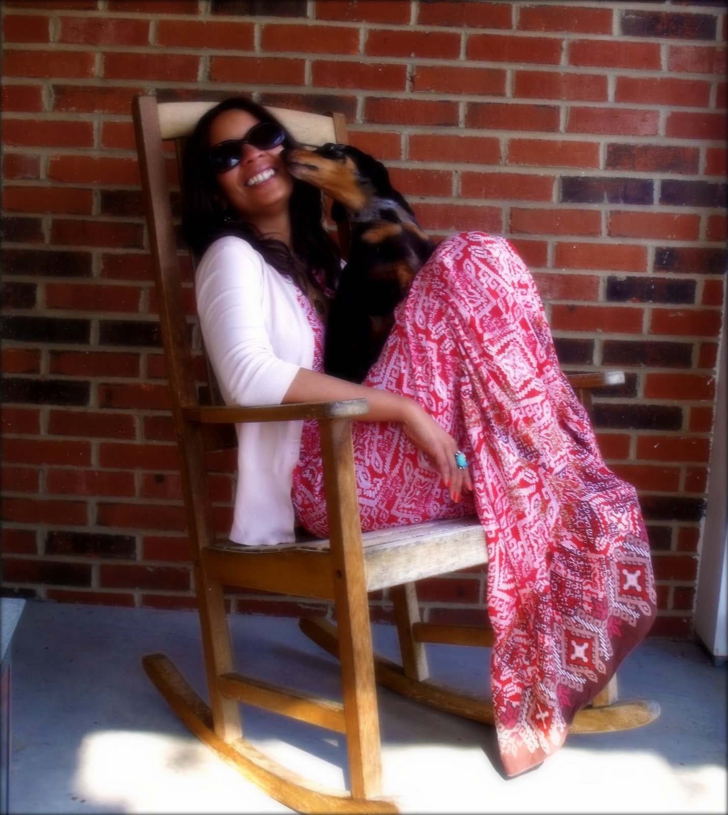 Beautiful weather, a morning bike ride with my honey, a few hours shopping with my girl R and an evening spent relaxing on the porch with the pup.